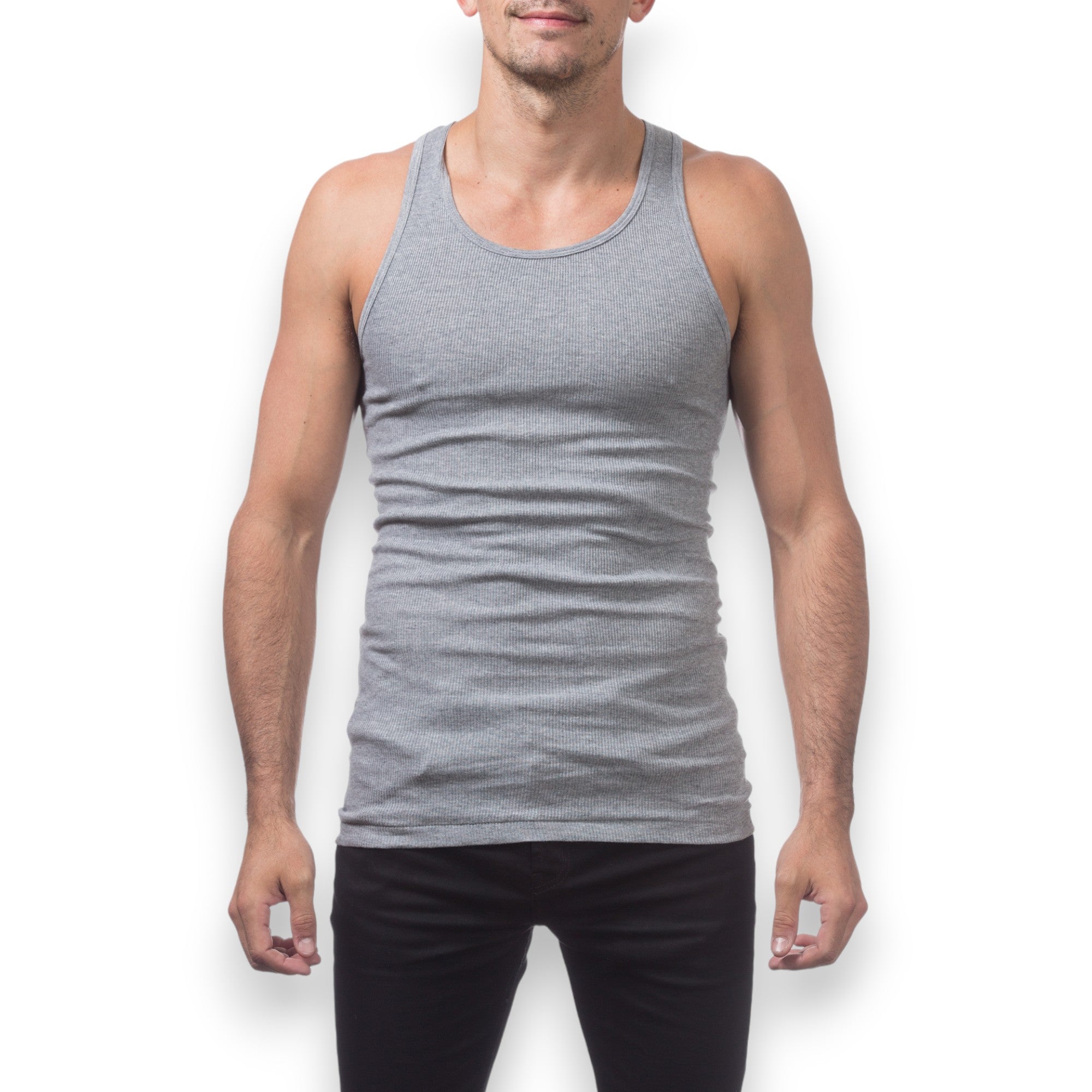 This ultra-soft rib-knit tank top provides a form-fitting, comfortable fit, perfect for use as an undershirt or for casual, active wear.